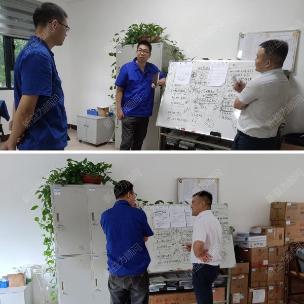 山西某化工材料公司事業(yè)部生產(chǎn)處路處長和新益為項(xiàng)目經(jīng)理易老師帶領(lǐng)檢查小組對(duì)7月份驗(yàn)收的第二拓展區(qū)6S管理開展情況進(jìn)行了驗(yàn)收,9個(gè)團(tuán)隊(duì)均驗(yàn)收合格。在驗(yàn)收過程中,檢查人員對(duì)仍可提高的問題給出了意見和建議,如:物品的歸類擺放、會(huì)議室不要物清理、電控柜頂部灰塵清理等。