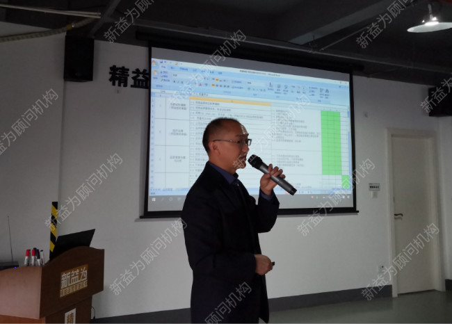 近日,河南某管業(yè)公司精益管理進入第二期輔導,本期輔導質(zhì)量板塊、精益現(xiàn)場板塊、制度建設三個板塊同時進行。新益為咨詢楊老師主持本次項目輔導首次會,對全程計劃與本期輔導的計劃進行了詳細講解。